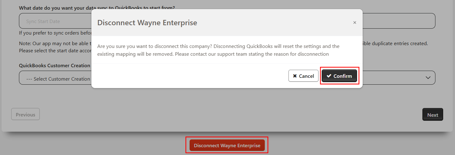- You will get an option to 'Disconnect company' at the bottom of the page. After clicking on it, a dialogue box will appear for confirmation.