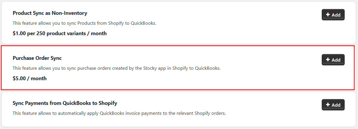 Also note that, this feature only syncs Purchase Orders created from Stocky. Any other type of transactions (Adjustments, Transfers, etc) will not be synced.
