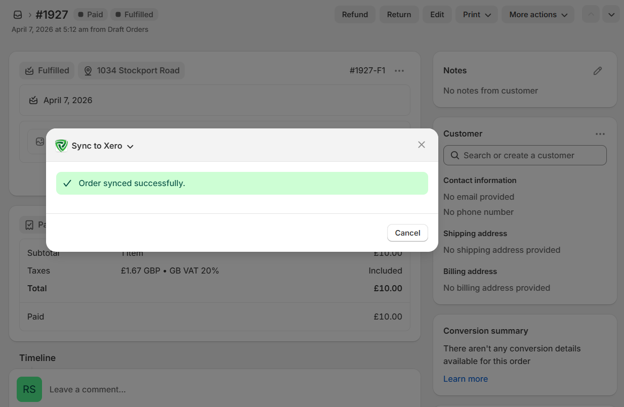This article explains how to manually sync an order instantly from Shopify to Xero using the "Sync to Xero" option and view that order in Xero.